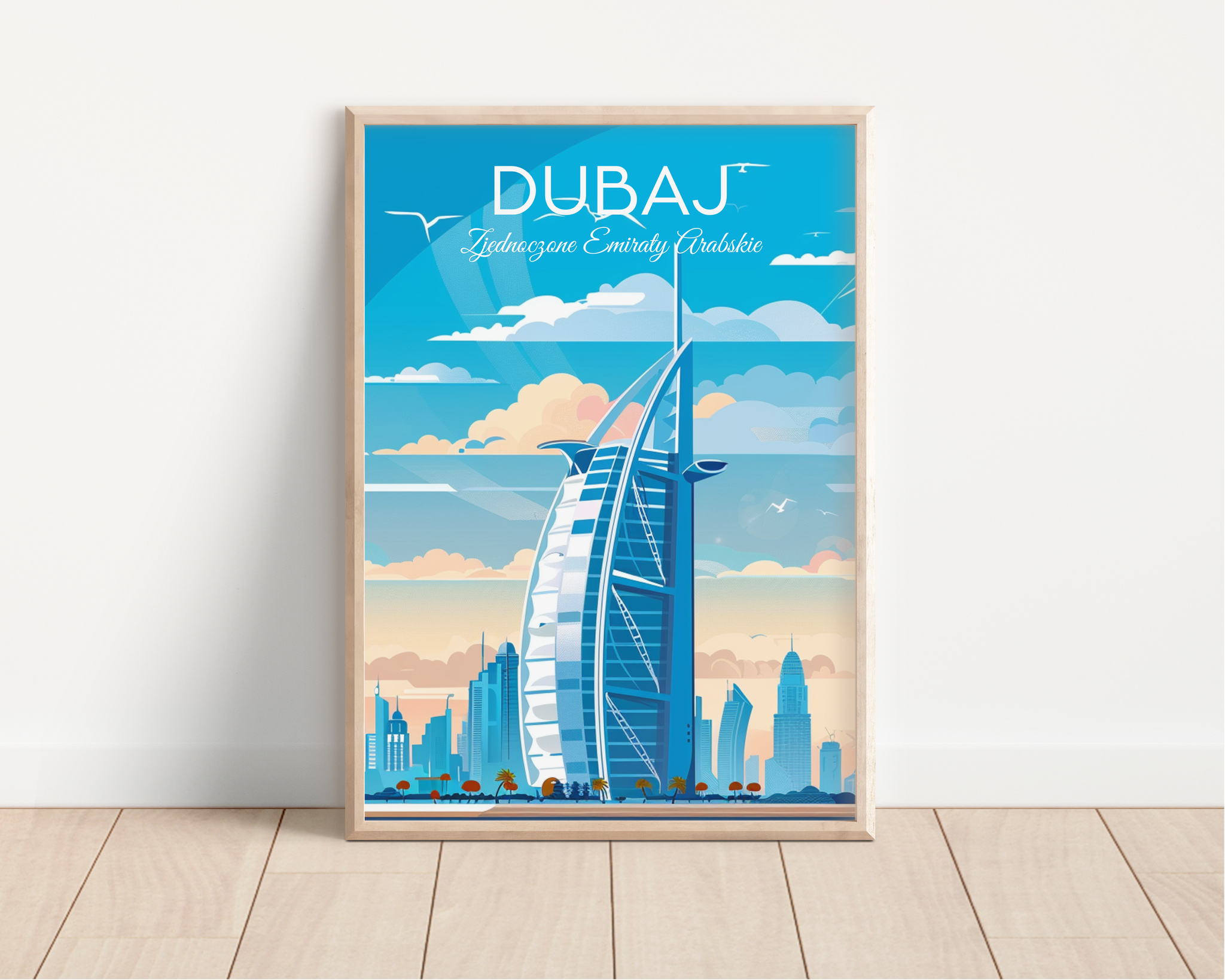 Nasz nowoczesny plakat podróżniczy to prezent, który zawsze będzie przypominał o pięknie Dubaju i wspomnieniach związanych z podróżami do tego niezwykłego miasta.