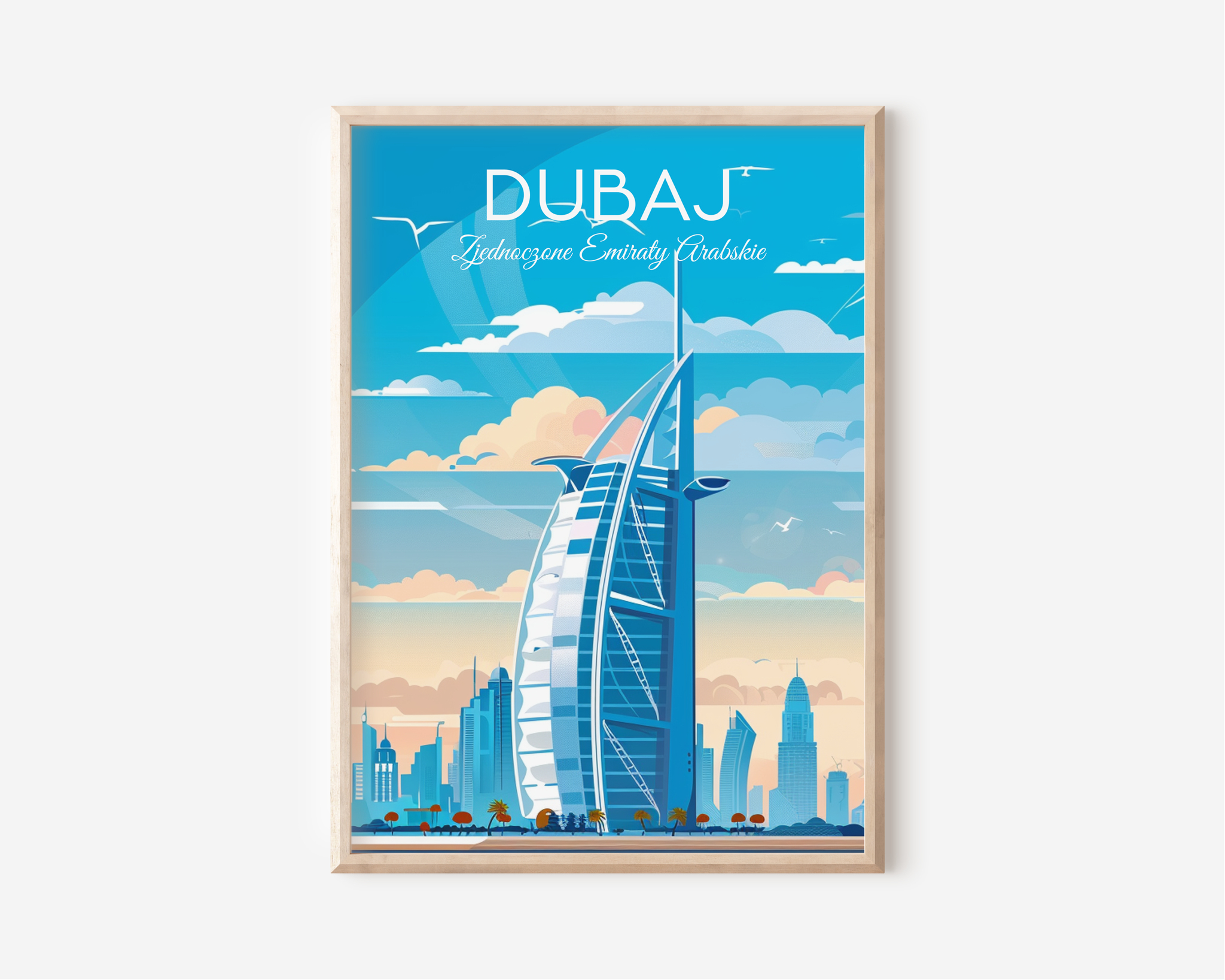 Odkryj naszą wyjątkową kolekcję nowoczesnych plakatów podróżniczych i wprowadź do swojego wnętrza niezapomniany akcent z Dubaju! Prezentujemy plakat, przedstawiający Burj Al Arab – jeden z najbardziej rozpoznawalnych zabytków na świecie. Ten luksusowy hotel w kształcie żagla doskonale oddaje charakter nowoczesnego Dubaju, stanowiąc wyjątkowy element dekoracyjny dla Twojego domu.