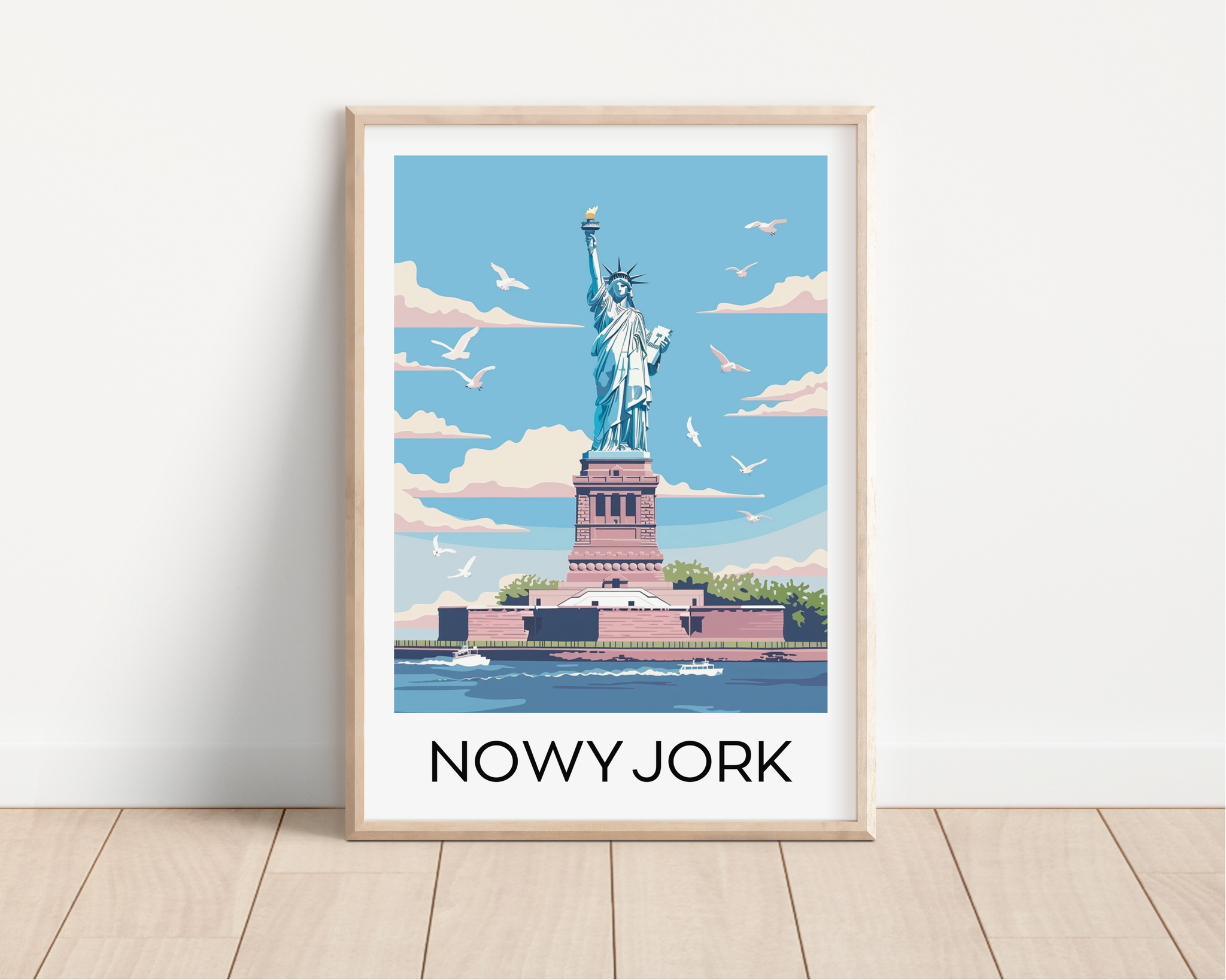 Odkryj naszą wyjątkową kolekcję nowoczesnych plakatów podróżniczych i wprowadź do swojego wnętrza niezapomniany akcent z Nowego Jorku! Prezentujemy plakat, przedstawiający Statutę Wolności – jeden z najbardziej rozpoznawalnych zabytków na świecie. Ten niezwykły symbol wolności i nadziei doskonale oddaje charakter Nowego Jorku, stanowiąc wyjątkowy element dekoracyjny dla Twojego domu.