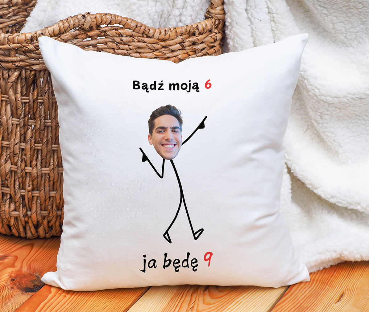 Szukasz prezentu, który zachwyci swoją oryginalnością i wywoła uśmiech? Personalizowana poduszka „Bądź moją 6” to idealne połączenie humoru, wysokiej jakości i unikalnego designu. Dzięki miękkiej mikrofibrze i możliwości dodania Twojej twarzy, ta poduszka stanie się wyjątkowym dodatkiem do każdego wnętrza.