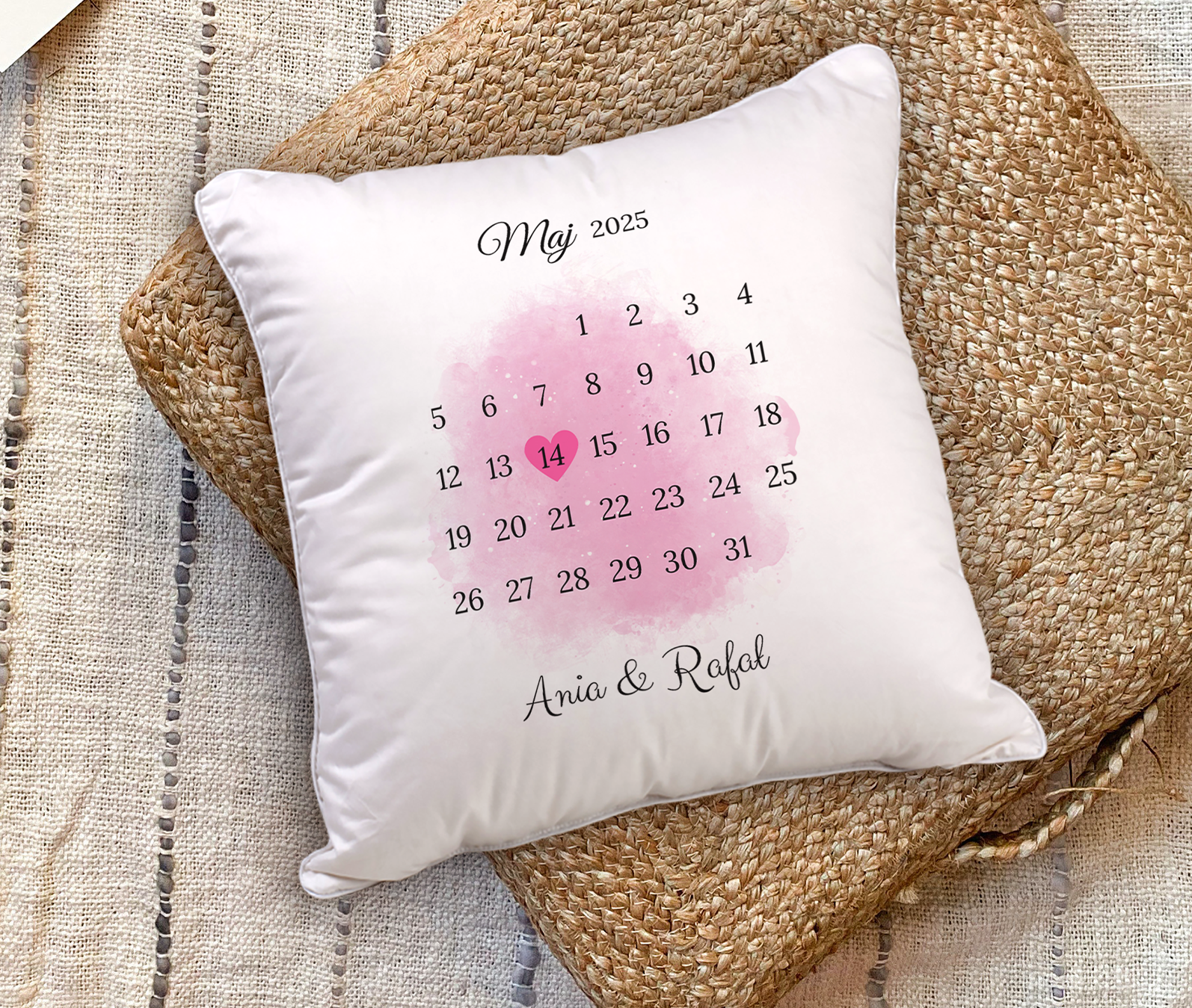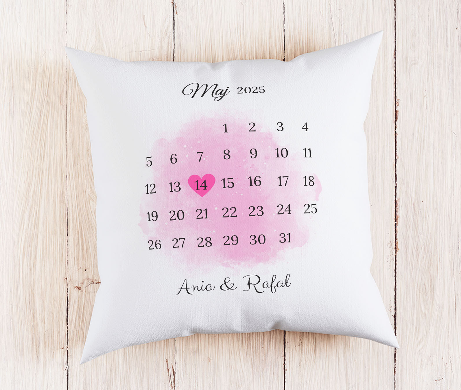 Podaruj bliskim Personalizowaną Poduszkę „Kalendarz”, aby każdego dnia przypominała o ważnym momencie. Wybierz datę i imiona, aby stworzyć prezent pełen osobistego znaczenia!