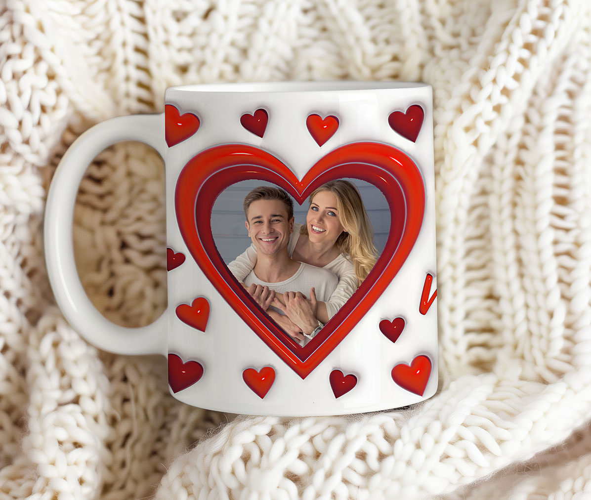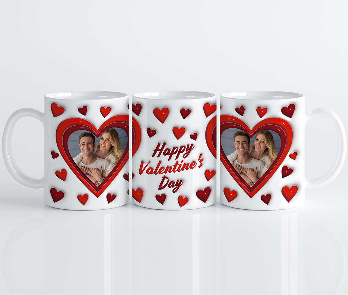 Szukasz wyjątkowego prezentu na Walentynki? Personalizowany Kubek z efektem 3D to idealny wybór, który zachwyci Twoją ukochaną osobę! Na kubku znajduje się Twoje zdjęcie w otoczeniu romantycznych serduszek i napisu „Happy Valentine’s Day”. To niezwykły sposób na wyrażenie swoich uczuć!