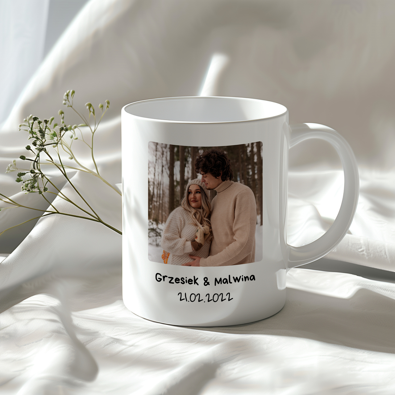 Personalizowany kubek ze zdjęciem, możliwością dodania daty i imion to wyjątkowy sposób na stworzenie unikalnego, osobistego prezentu. Wykonany z wysokiej jakości ceramiki, kubek zapewnia trwałość oraz komfort użytkowania, a jego pojemność 330 ml sprawia, że doskonale nadaje się na codzienną kawę, herbatę czy gorącą czekoladę.