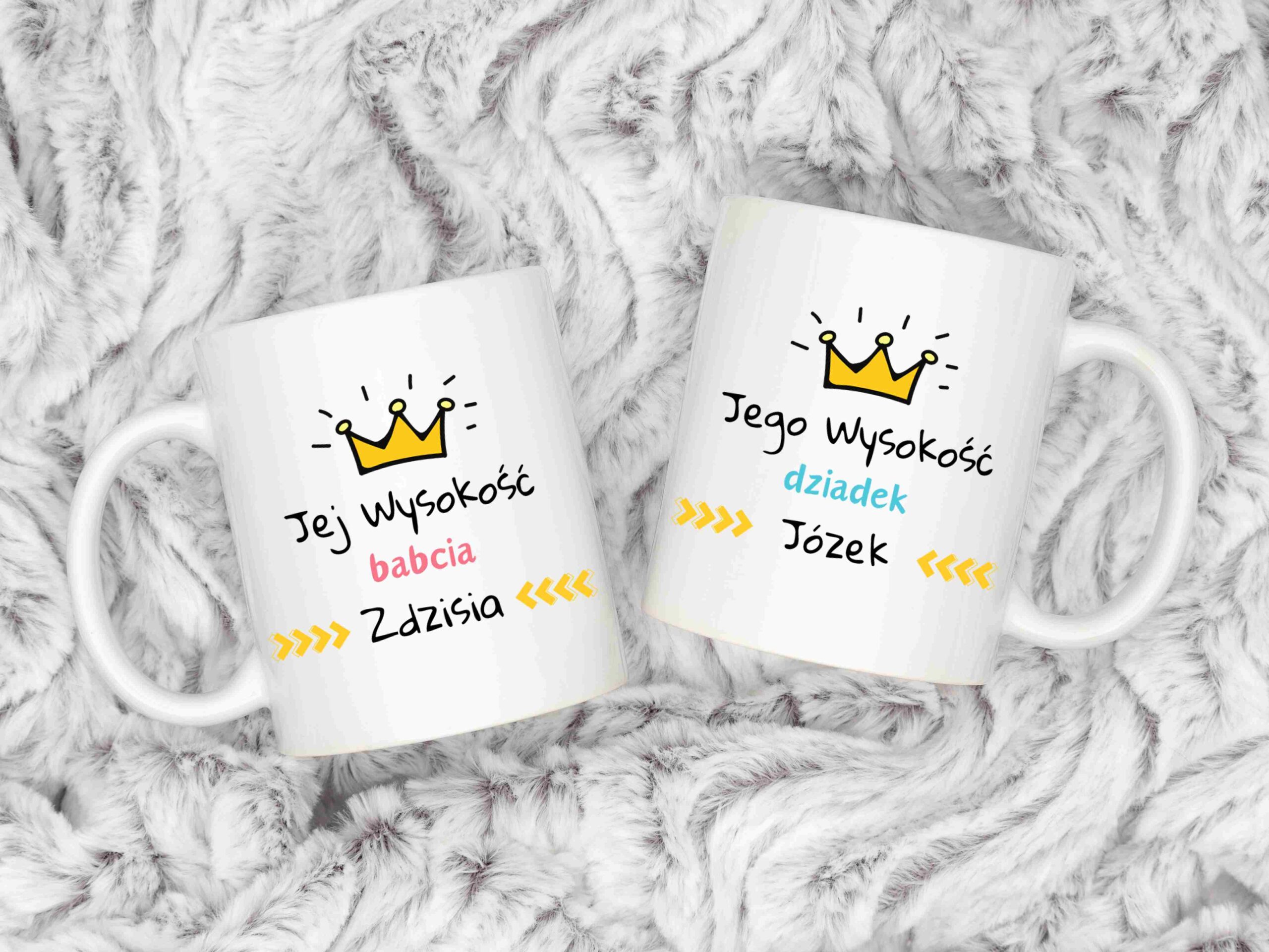 Personalizowany Zestaw Kubków „Jej i Jego Wysokość” to połączenie humoru, funkcjonalności i sentymentalnej wartości, które wywołają uśmiech na twarzach Babci i Dziadka każdego dnia.