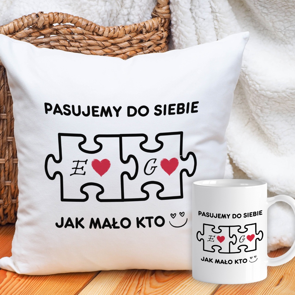 Personalizowany Zestaw Kubek + Poduszka „Pasujemy do Siebie” – Idealny Prezent dla Dwojga!