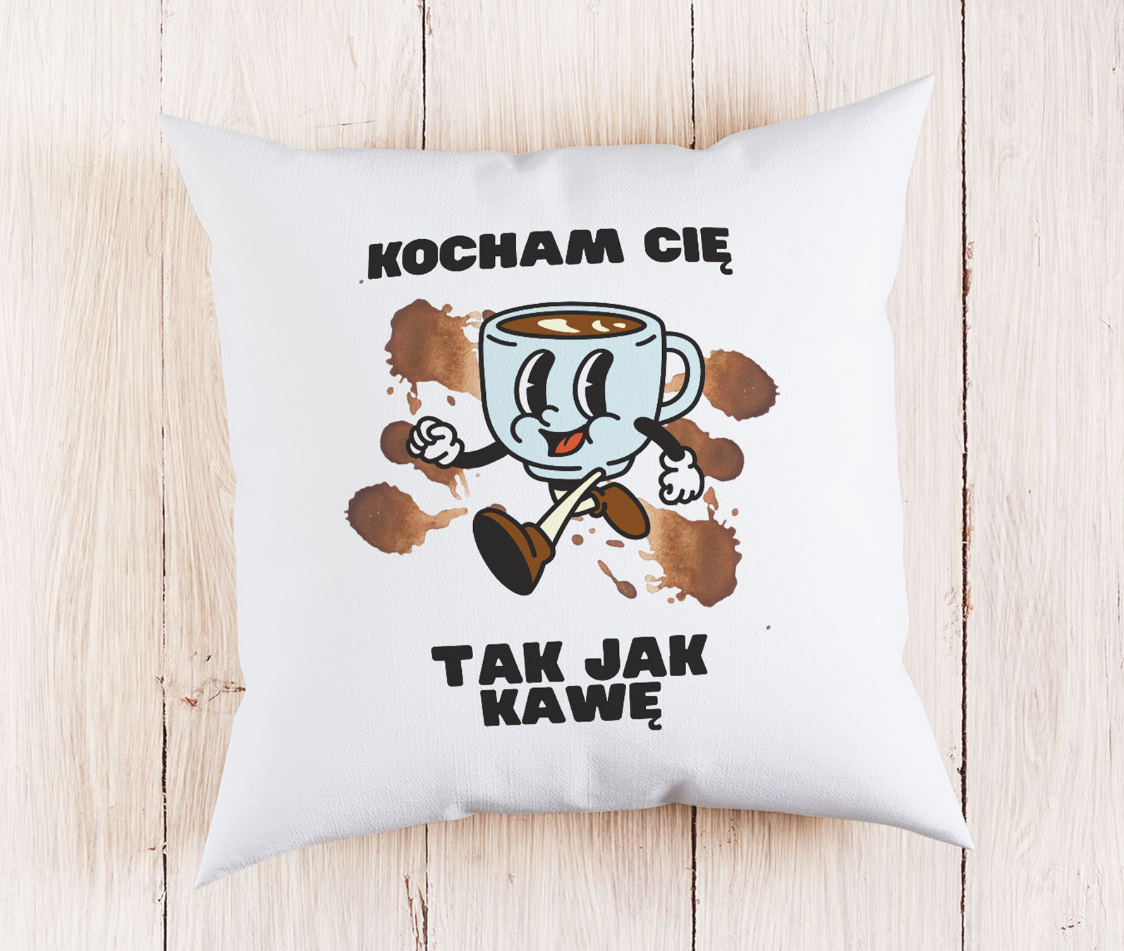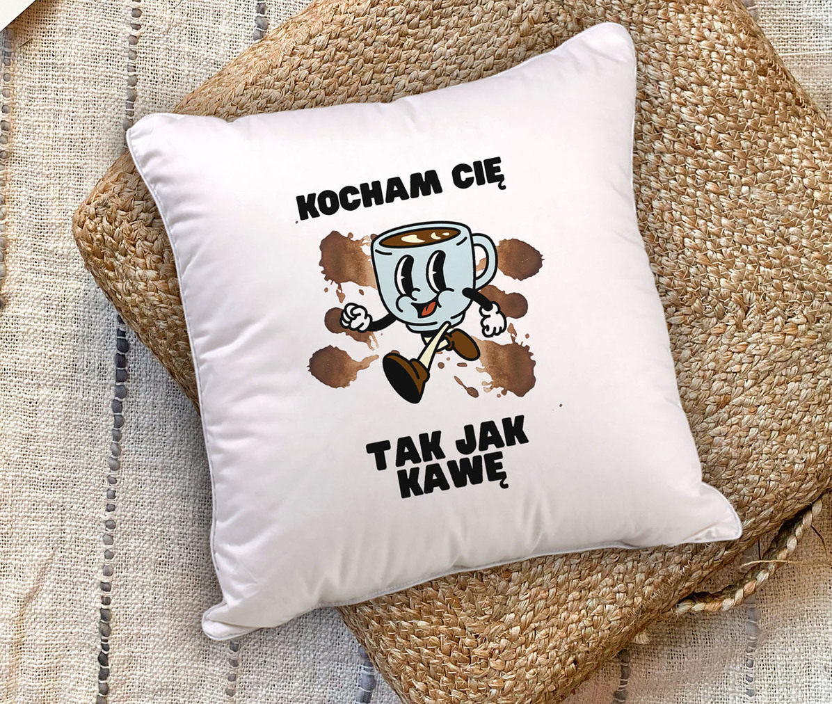 Poduszka „Kocham Cię Tak Jak Kawę” z Grafiką Kawy – Słodki i Aromatyczny Wyraz Uczuć