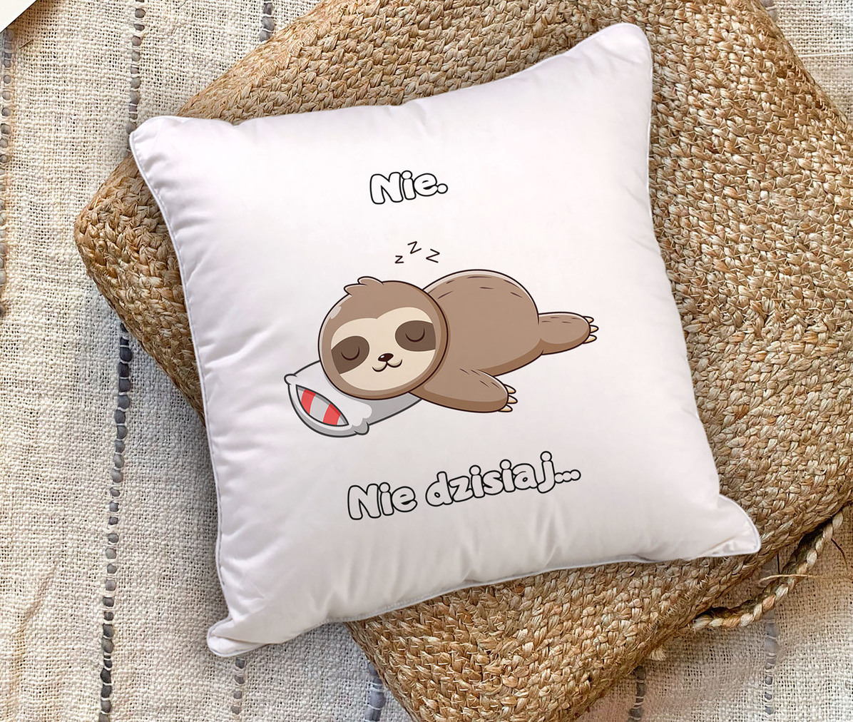 Poduszka „Nie, Nie Dzisiaj!” z Grafiką Leniwca – Idealny Prezent Dla Miłośników Relaksu