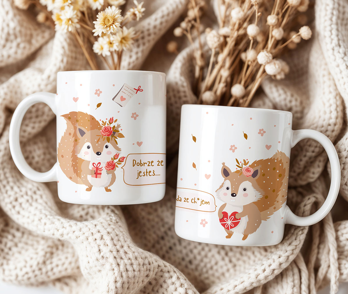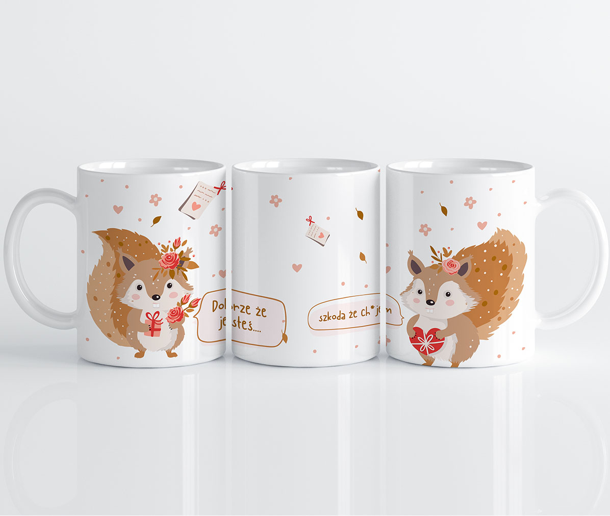 Dodaj odrobinę humoru i uroczości do swojego dnia dzięki naszemu kubkowi! 🦊 Ten kubek 330ml, Klasy A+, to idealne połączenie zabawnego napisu: „Dobrze, że jesteś… szkoda, że C**jem”*, oraz słodkiego wzoru z wiewiórkami. Perfekcyjny gadżet dla osób, które lubią wyrażać siebie w kreatywny i zabawny sposób!